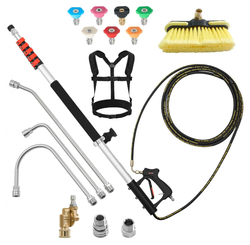 Teleskopinis aukšto slėgio plovyklos kotas VEVOR – profesionalus sprendimas aukštų paviršių valymui be kopėčių. Idealiai tinka stogams, fasadams, langams ir lietvamzdžiams valyti, užtikrinant saugų ir efektyvų darbą.